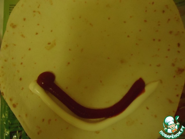 • Тортилью смазать соусами, в данном примере майонезом и кетчупом.