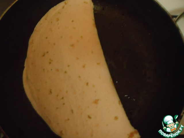 • Сложить пополам и обжарить на сковороде, с небольшим добавлением масла растительного, с двух сторон.