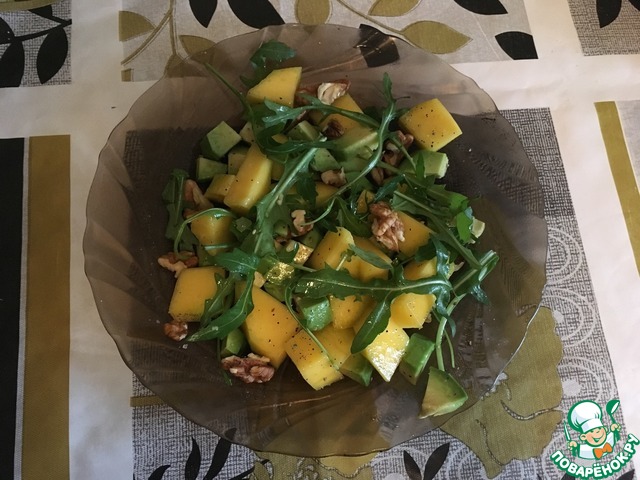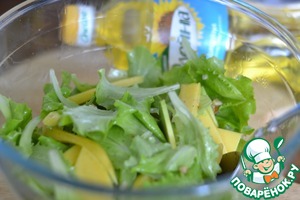 В миску выкладываем рукколу или как у меня салат Инсалатина, мне он больше нравиться.