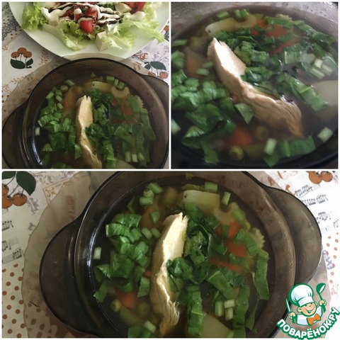 Легкий и пикантный куриный суп с овощами и черемшой.