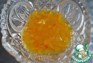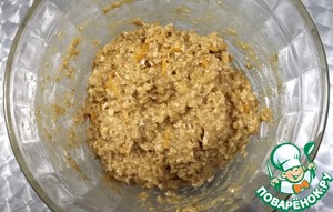В сухую смесь добавляем растительное масло, мёд. С апельсина снимаем и измельчаем цедру, добавляем в смесь. Апельсин разрезаем пополам, вилкой выдавливаем сок и вынимаем мякоть, добавляем в смесь.