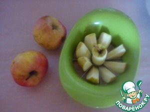 Пока сахар превращался в карамель, яблоки нарезать на дольки. взбрызнуть лимонным соком.