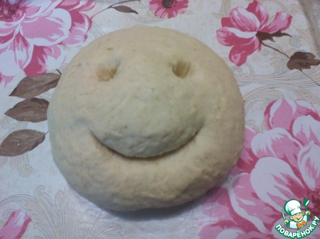 После часа достаём тесто и вымешиваем хорошенько. При повторном замесе я добавила ещё 6 столовых ложек муки.