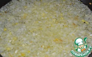 Лук мелко нарезаем и обжариваем на растительном масле.