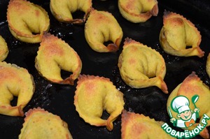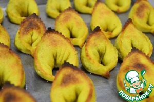 На противень, смазанный растительным маслом, выкладываем постные кундюмы. Отправляем в духовку рри t 250 градусоа. Этим временем лепим скоромные ккндюмы.