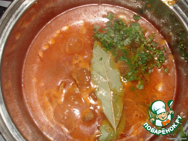 Тушить до готовности, минут за 5 до готовности добавить зелень и лавровый лист.