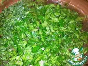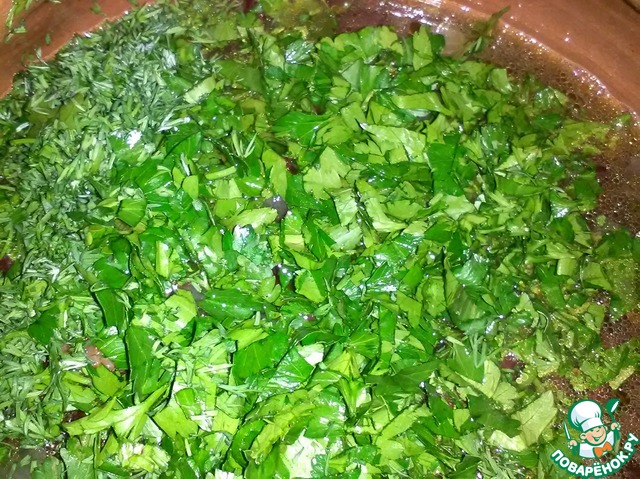 Размешиваем, солим по вкусу и отправляем все в глиняный горшок