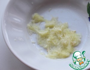 Чеснок и имбирь очистить от кожуры. Смешать с солью и перетереть в ступке или блендере. Добавить к огурцам.