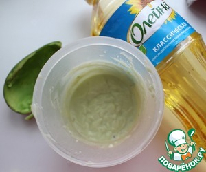 Для этого рецепта лучше брать спелый авокадо. Смешать авокадо, соевое молоко и подсолнечное масло, взбить блендером до однородности. Кусочков авокадо быть не должно!