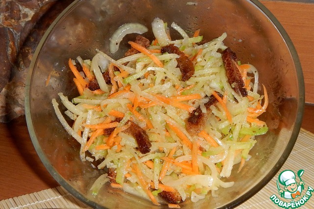 Рецепт «Салат из редьки с черным хлебом»:
