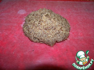 Вот такой колобок у нас получился. Завернём его в пищевую плёнку и оставим в холодильнике минут на 30.