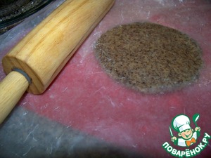 Охлаждённое тесто (колобок) раскатать в 0,5 см. толщиной на слегка подпыленном мукой столе, лучше раскатывать с помощью пищевой бумаги.