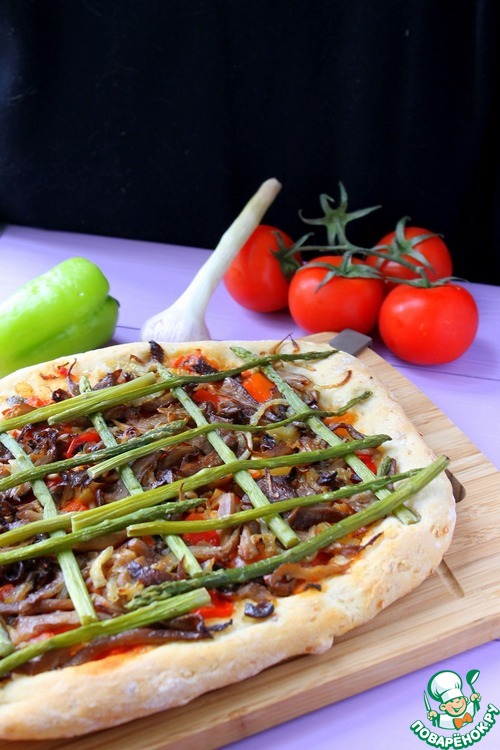 Предлагаю вашему вниманию две вкусных пиццы - с мидиями и сыром, и постный вариант - с грибочками и спаржей. Угощайтесь, друзья!