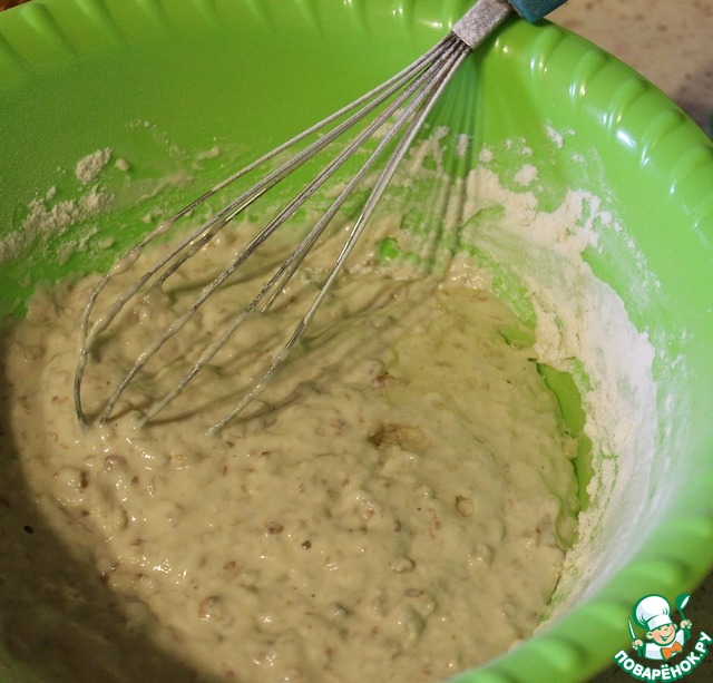 Постепенно всыпать просеянную муку. Как только консистенция станет густой, добавить масло, перемешать. Добавить оставшуюся муку.