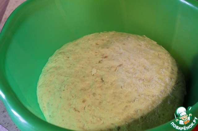 Тесто не должно липнуть к рукам. Скатать его в шар и выложить в чистую миску, смазанную 1 ч. л. растительного масла. Накрыть полотенцем и оставить на 1,5 часа в теплом месте.