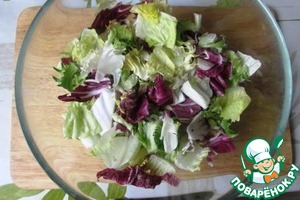 Исходные продукты. Салатная смесь может быть любой по вашему вкусу, а может состоять только из одного сорта салата. Я взяла смесь с салатом радичио, она красиво смотрится в салате.