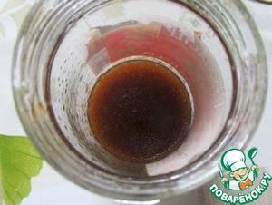 Готовим заправку: вливаем в баночку соевый соус, уксус и половину растительного масла, добавляем сахарную пудру и перец чили.