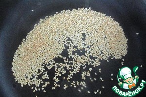 Кунжут обжариваем на сухой горячей сковороде до изменения цвета