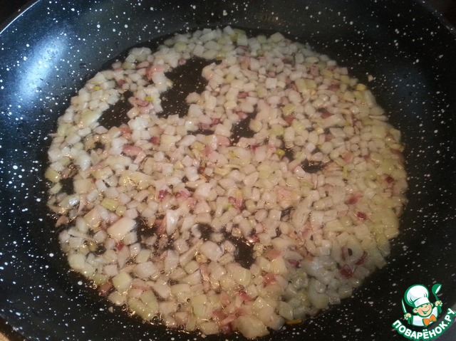 В это время готовим соус. В сковороде нагреть растительное масло Олейна и обжарить лук до мягкости.