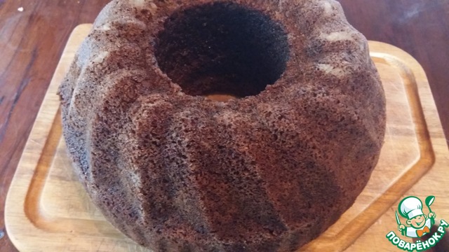 Смесь размешать и вылить в форму с трубой. Учитывайте, что в процессе выпечки тесто поднимется на 1/3. Духовку следует заранее разогреть.