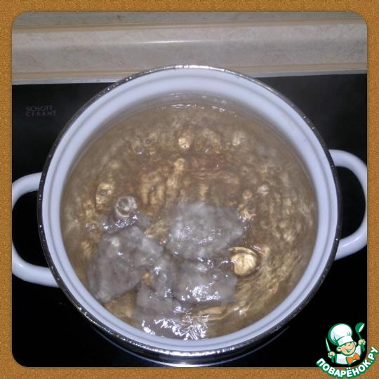 Заливаем водой и варим на медленном огне 10 минут.