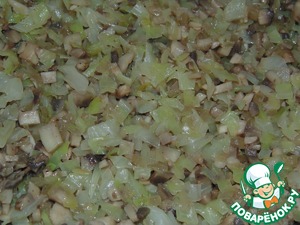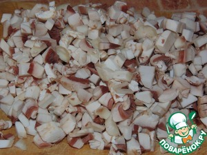 Шампиньоны мелко порезать и отправить к луку.