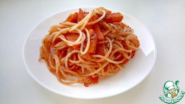 Ингредиенты для «Спагетти с тыквой и томатами»: