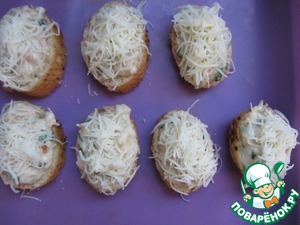 Пришло время заняться не постной добавкой! Не обязательно нарезать именно 7 ломтиков багета, можете количество регулировать по своему желанию.