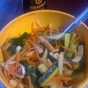 Остренький салатик на скорую руку! Ну что сказать - быстро, вкусно, остро! Мои домашние любят! Весной отлично подойдет к шашлыкам