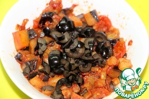 Добавить порезанные маслины и каперсы (по желанию, я не всегда добавляю).