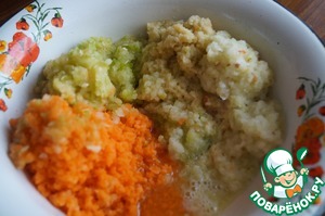 Через мясорубку пропускаем морковь, лук, кабачок и яблоко.