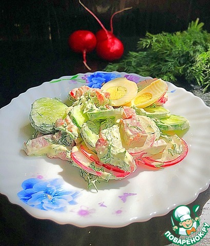 Рецепт «Яичный салат с ветчиной и редисом»: