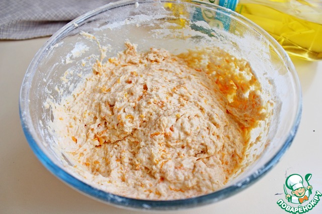 Замесить тесто, добавив оставшуюся муку, тесто не забивать мукой! оно должно быть немного липким.