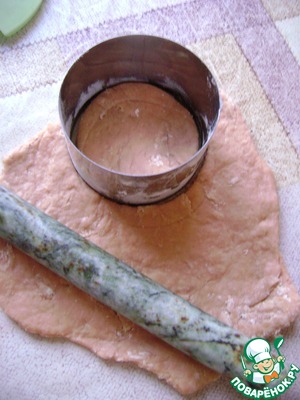 Готовое тесто раскатать не тонко-удобнее частями-и вырезать кружочки.