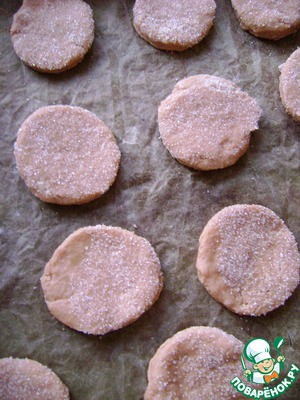 Обмакнуть одну сторону в сахар и уложить на лист – я кладу на коврик для выпечки. Выпекать при 200 градусах до румяности. Остудить на решетке и подавать.