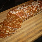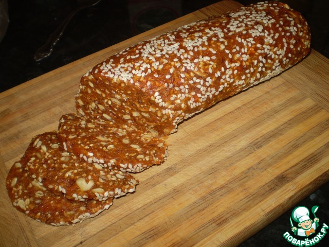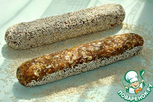 Из получившейся массы сформировать две колбаски и обвалять их в оставшейся части кунжута.