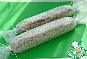 Колбаски завернуть в пищевую пленку и положить в холодильник на 2 -3 часа.