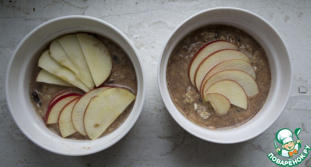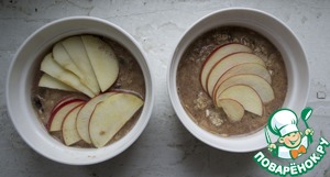 Порезать яблоки, можно слайсами, можно просто мелким кубиком. Выложить сверху.