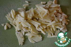 Филе вымыть, обсушить, нарезать тонкими полосками.