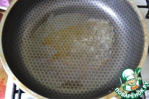 В сковороду налить масло и добавить сахар. Дождаться пока сахар растворится и смесь потемнеет.