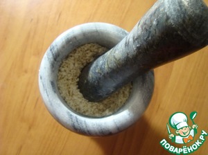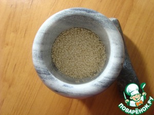 Кунжутное семя нужно растолочь. Я его поместила в ступку.