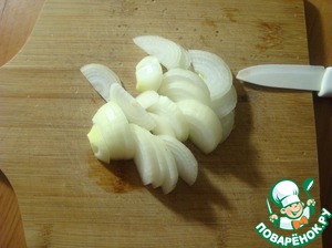 Лук порезала полукольцами. Обжарила в масле и сняла со сковороды.
