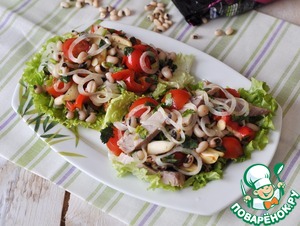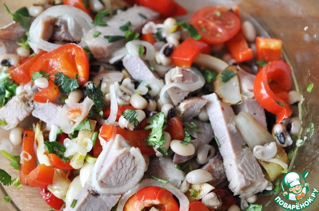 Рецепт «Салат с фасолью и маринованной свининой»: