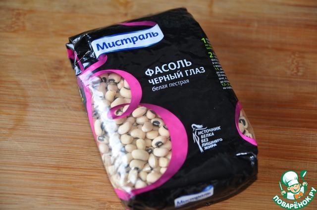 • Для приготовления берём фасоль "Чёрный глаз" от "Мистраль", замачиваем заранее, лучше на ночь.