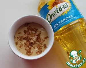 Смешать жидкие ингредиенты: воду комнатной температуры, ванильную эссенцию и подсолнечное масло.