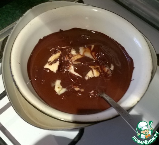 Шоколад растопить на водяной бане и добавить в него слив. масло.