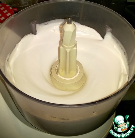 Белки взбить с сахаром до устойчивых пиков. Я пользуюсь насадкой на кух. комбайне, специально для этого предназначенной, и всегда получаю прекрасный результат. У кого такая есть, но не использовали - настоятельно рекомендую.