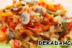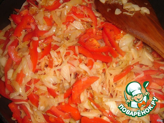 В самом конце добавить помидорки (тоже соломкой по возможности:)) и все перемешать. Посолить и поперчить по вкусу, дать потушиться вместе и пропитаться соками.