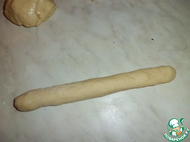 Берем "колобок" и вытягиваем его в жгут. Длина примерно 25 см. -