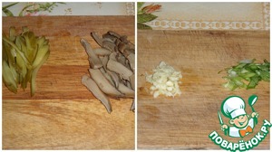 • Нарезаем огурцы и грибы. Измельчаем чеснок. Нарезаем зелень.